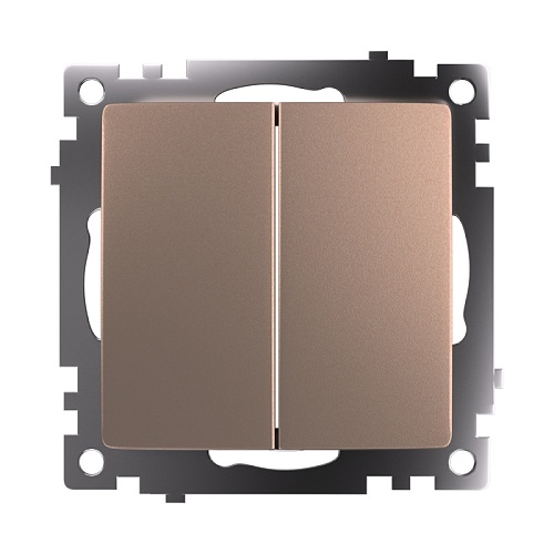 Выключатель 2-клавишный (механизм), STEKKER GLS10-7104-02, 250V, 10А, серия Катрин, шампань