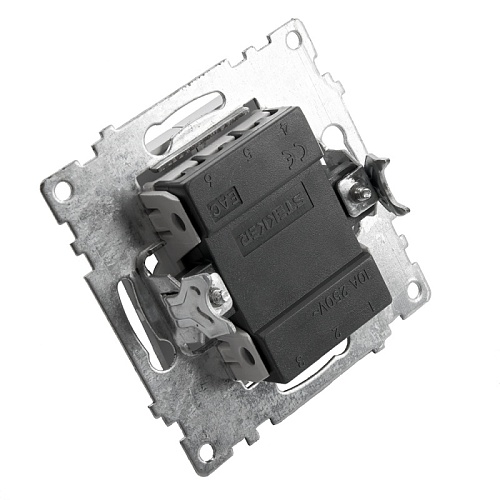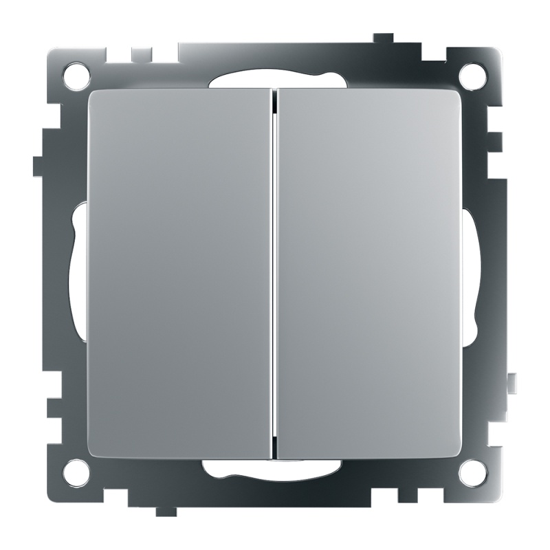 Характеристики Выключатель 2-клавишный (механизм), STEKKER GLS10-7104-03, 250V, 10А, серия Катрин, серебро