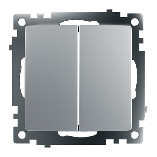 Выключатель 2-клавишный (механизм), STEKKER GLS10-7104-03, 250V, 10А, серия Катрин, серебро