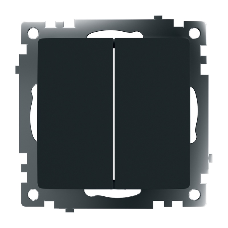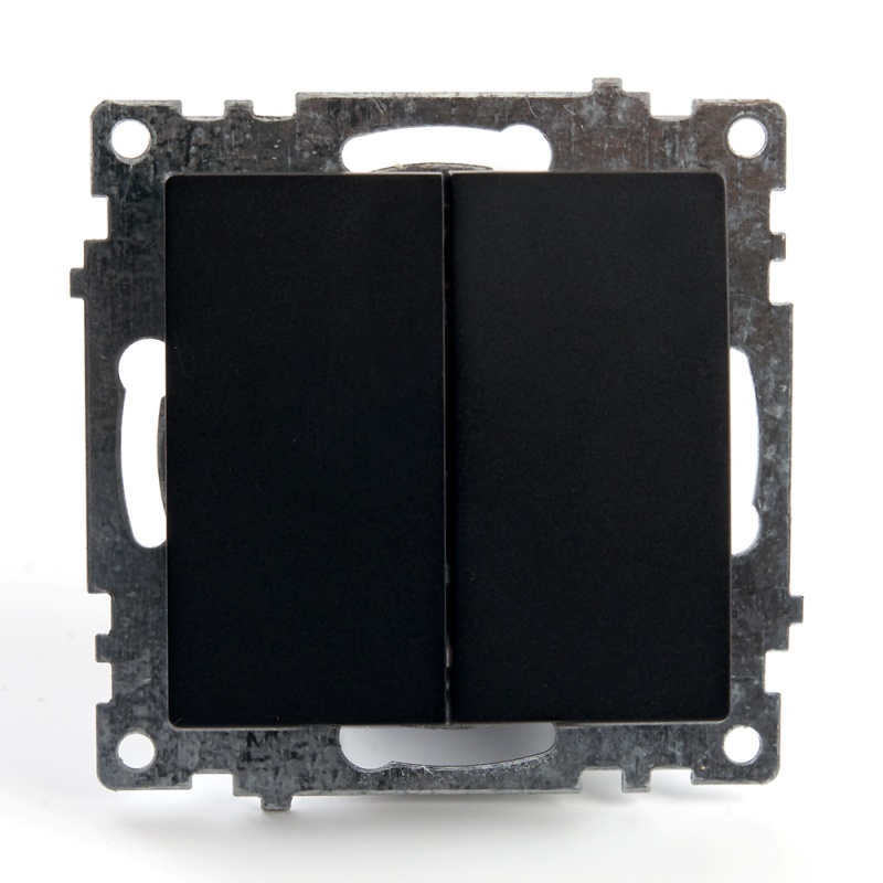 Выключатель 2-клавишный (механизм), STEKKER GLS10-7104-05, 250V, 10А, серия Катрин, черный