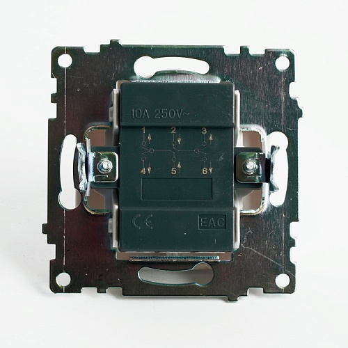 Характеристики Переключатель 2-клавишный (механизм), STEKKER GLS10-7107-01 , 250V, 10А, серия Катрин, белый