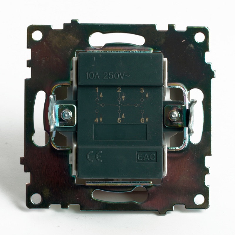 Характеристики Переключатель2-клавишный (механизм), STEKKER GLS10-7107-02, 250V, 10А, серия Катрин, шампань
