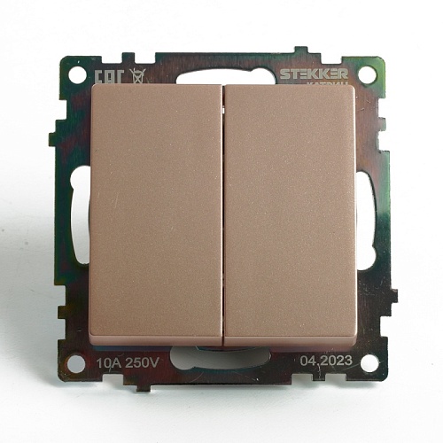 Переключатель2-клавишный (механизм), STEKKER GLS10-7107-02, 250V, 10А, серия Катрин, шампань 49169