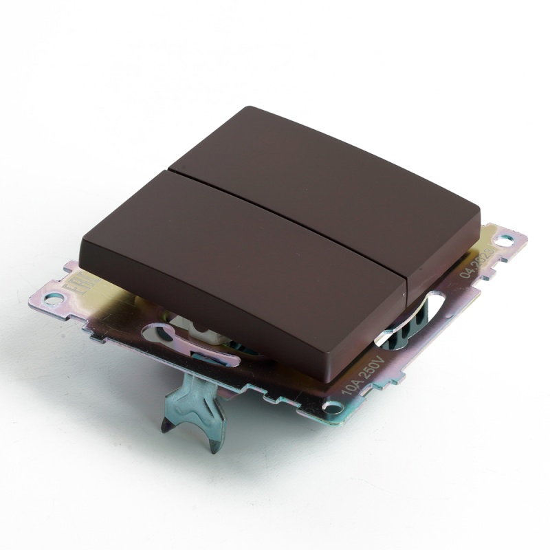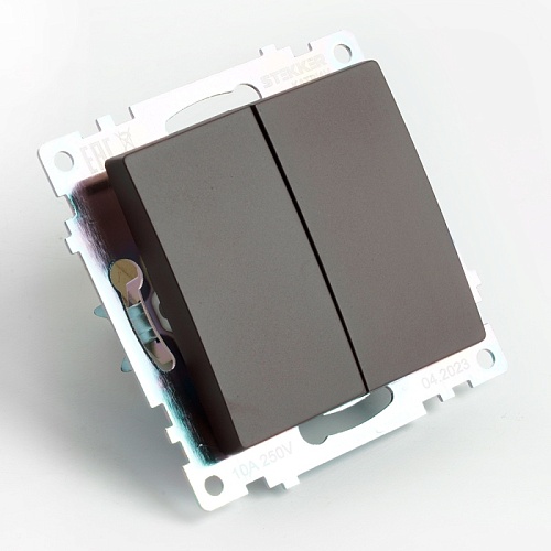 Переключатель 2-клавишный (механизм), STEKKER GLS10-7107-04, 250V, 10А, серия Катрин, шоколад
