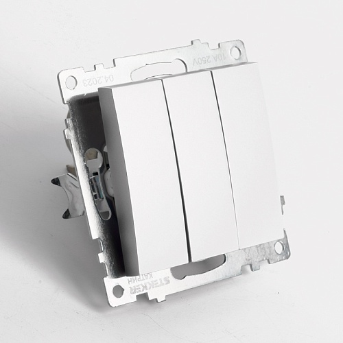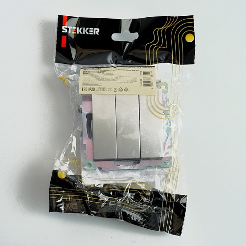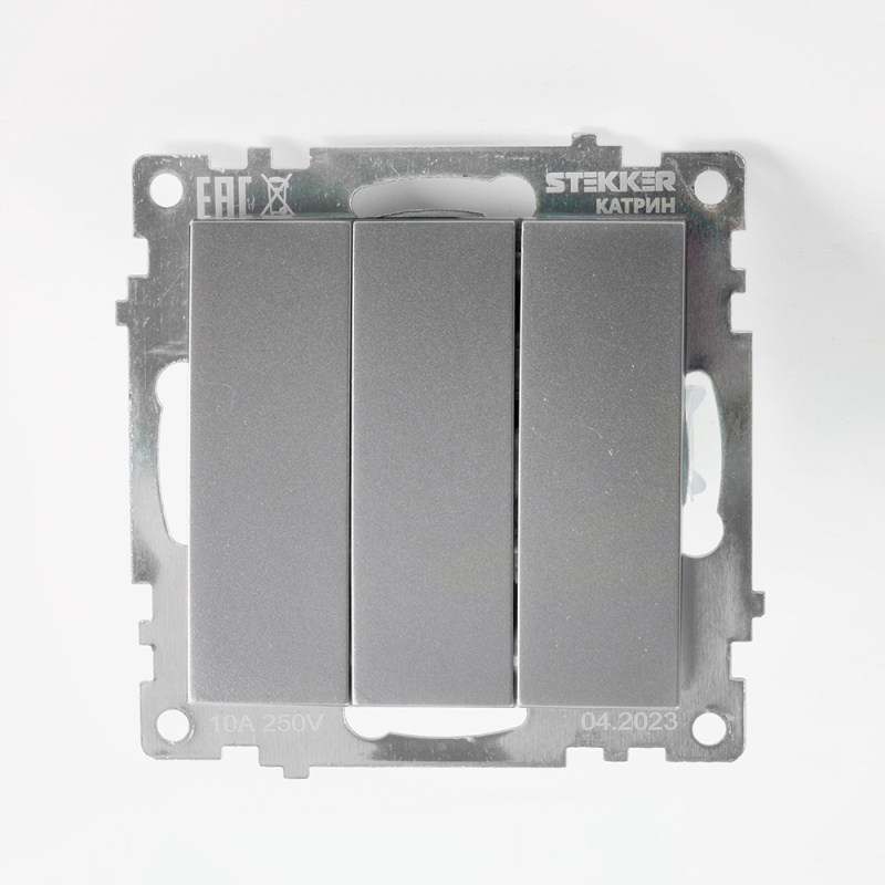 Отзывы о Выключатель 3-клавишный (механизм), STEKKER GLS10-7108-03, 250V, 10А, серия Катрин, серебро