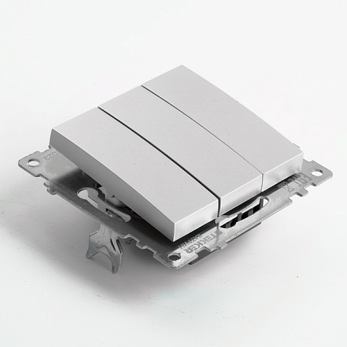 Выключатель 3-клавишный (механизм), STEKKER GLS10-7108-03, 250V, 10А, серия Катрин, серебро