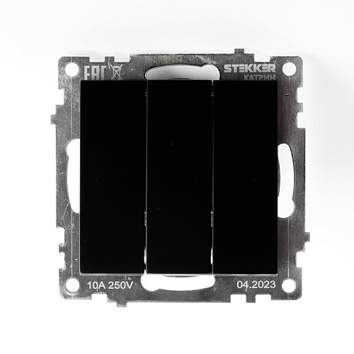 Выключатель 3-клавишный (механизм), STEKKER GLS10-7108-05, 250V, 10А, серия Катрин, черный