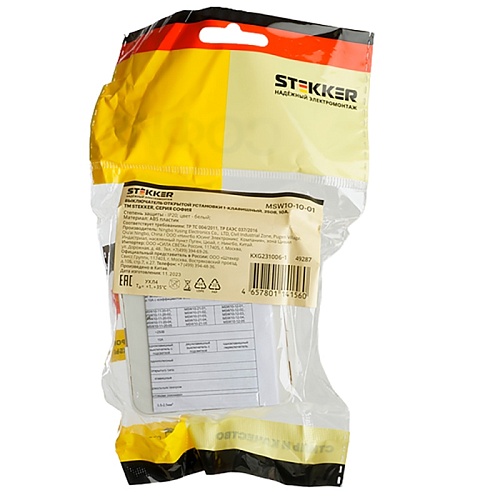 Отзывы о Выключатель открытой установки 1-клавишный, STEKKER, MSW10-10-01, ABS- пластик, 250В, 10А, IP20, серия София, белый