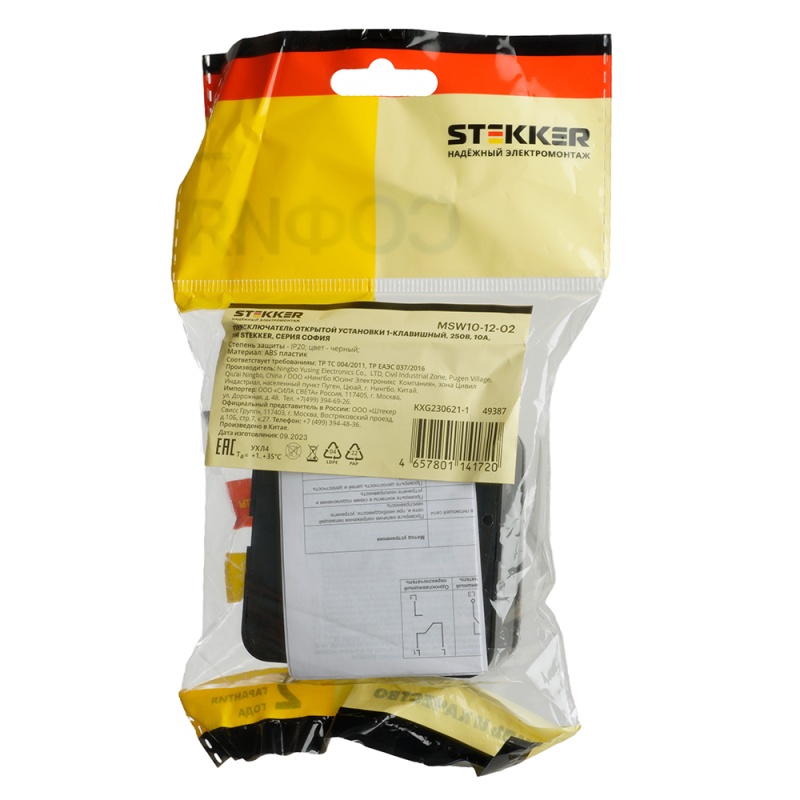Отзывы о Переключатель открытой установки 1-клавишный, STEKKER, 250В, 10А, IP20, серия София, черный, MSW10-12-02