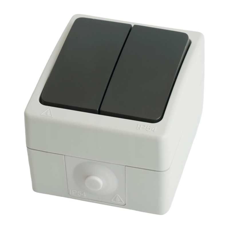 Выключатель 2-клавишный, STEKKER, PSW10-121-54, открытой установки, 250В, 10А, IP54, серый/графит