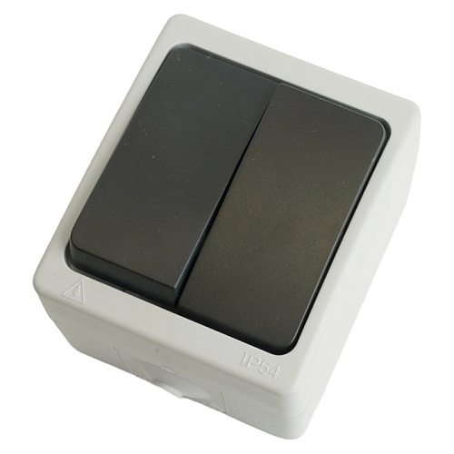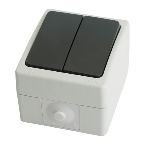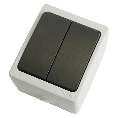 Выключатель 2-клавишный, STEKKER, PSW10-121-54, открытой установки, 250В, 10А, IP54, серый/графит 32753