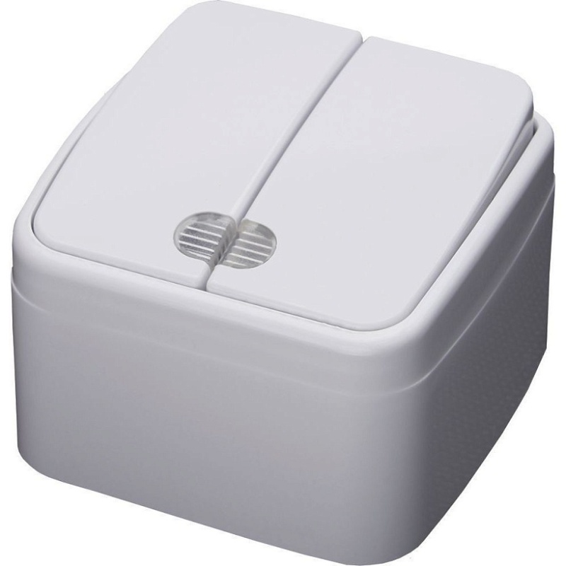 Выключатель 2-клавишный с индикатором STEKKER, PSW10-32-20, открытой установки, 250В, 10А, IP20, серия Basic, белый