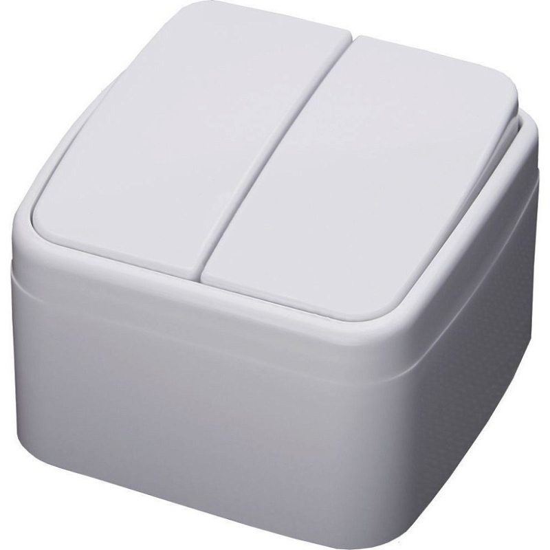 Выключатель 2-клавишный STEKKER, PSW10-42-20, открытой установки, 250В, 10А, IP20, серия Basic, белый