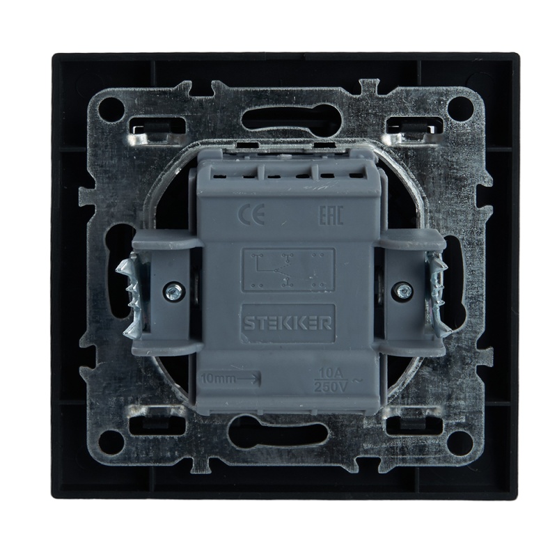 Характеристики Переключатель 1-клавишный STEKKER PSW10-9005-03, 250В, 10А, серия Эрна, черный