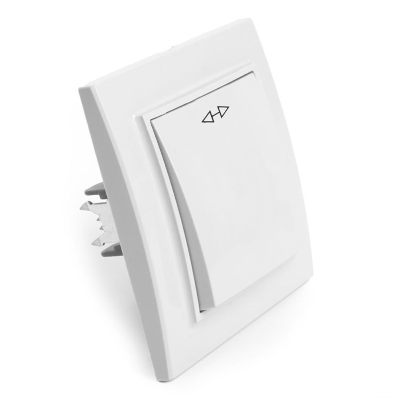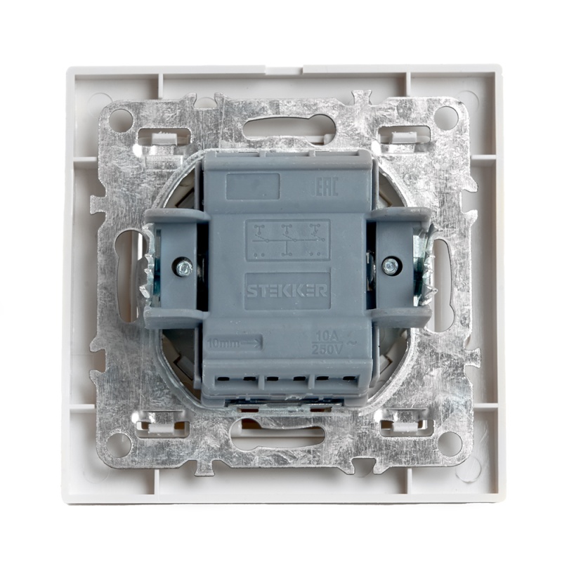 Характеристики Переключатель перекрестный 1-клавишный STEKKER PSW10-9009-01, 250В, 10А, серия Эрна, белый