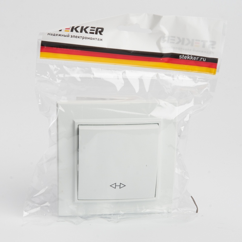Переключатель перекрестный 1-клавишный STEKKER PSW10-9009-01, 250В, 10А, серия Эрна, белый