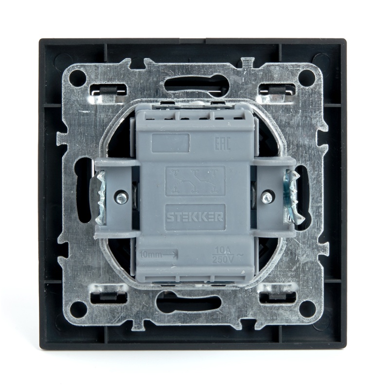 Отзывы о Переключатель перекрестный 1-клавишный STEKKER PSW10-9009-03, 250В, 10А, серия Эрна, черный