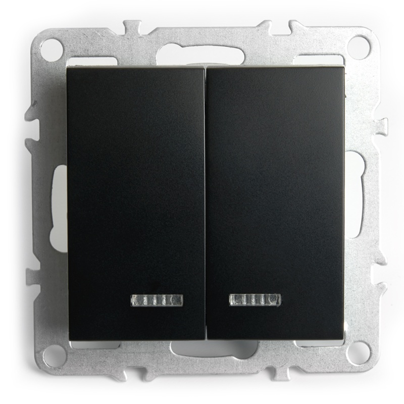 Отзывы о Выключатель 2-клавишный с индикатором (механизм), STEKKER, PSW10-9102-03, 250В, 10А, серия Эрна, черный