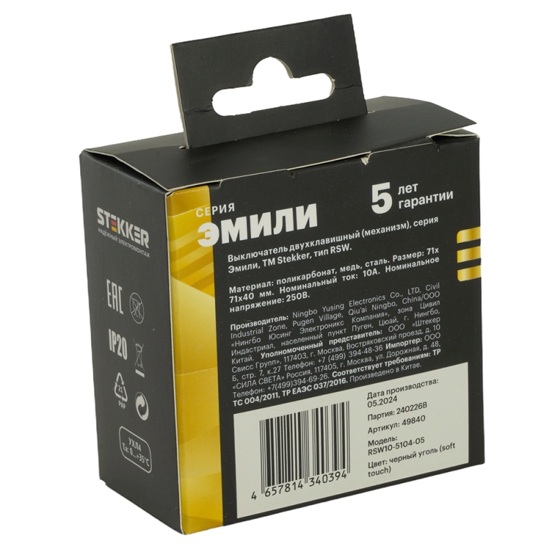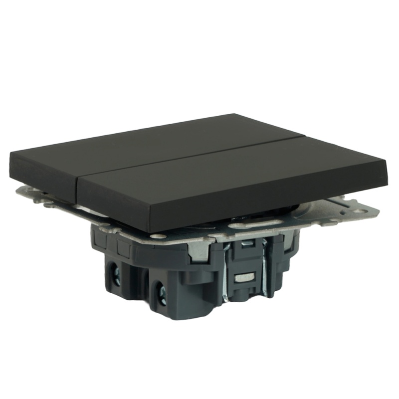 Отзывы о Выключатель 2-клавишный (механизм), STEKKER, 250В, 10А, серия Эмили, RSW10-5104-05, черный уголь, soft touch