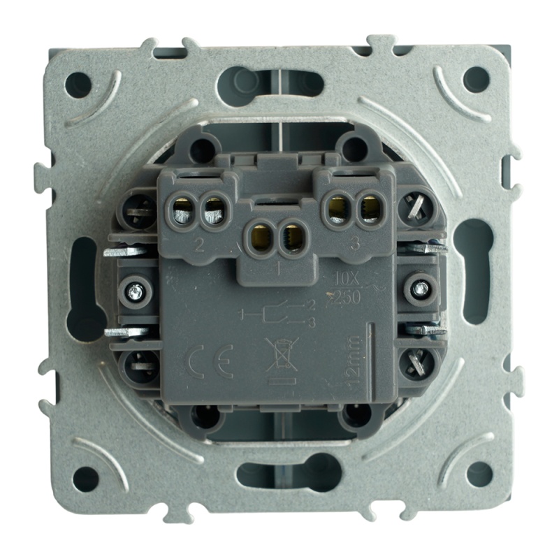 Характеристики Выключатель 2-клавишный (механизм), STEKKER, 250В, 10А, серия Эмили, RSW10-5104-10, платиново-серый, soft touch