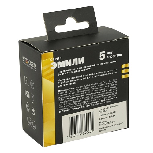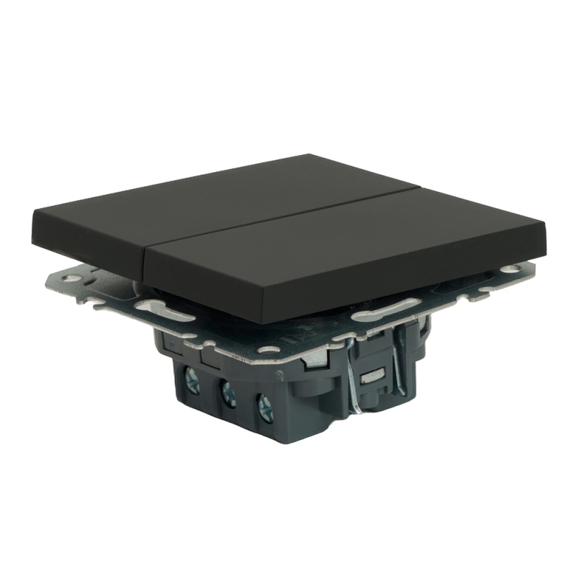 Отзывы о Переключатель 2-клавишный (механизм), STEKKER, 250В, 10А, серия Эмили, RSW10-5107-05, черный уголь, soft touch
