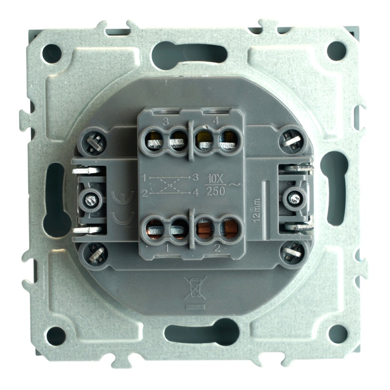 Характеристики Переключатель перекрестный 1-клавишный (механизм), STEKKER, 250В, 10А, серия Эмили, RSW10-5110-10, платиново-серый, soft touch