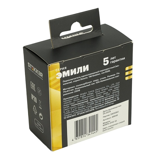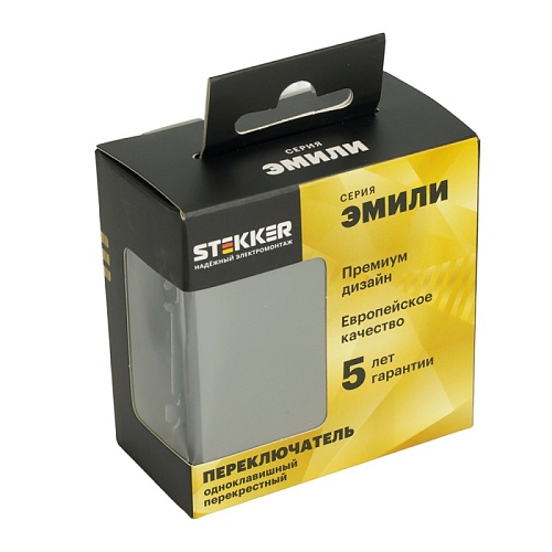Отзывы о Переключатель перекрестный 1-клавишный (механизм), STEKKER, 250В, 10А, серия Эмили, RSW10-5110-10, платиново-серый, soft touch