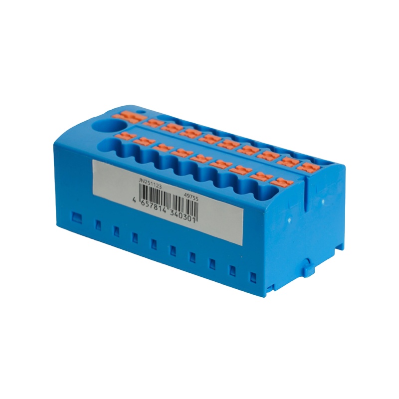 Отзывы о Зажим блочный (групп) для распред.тока нагрузки push-in на 18 точек, сеч 2,5 мм2,690V,41А, 1точка интегр. питание, синий LD580 PTFIX 6-18/25