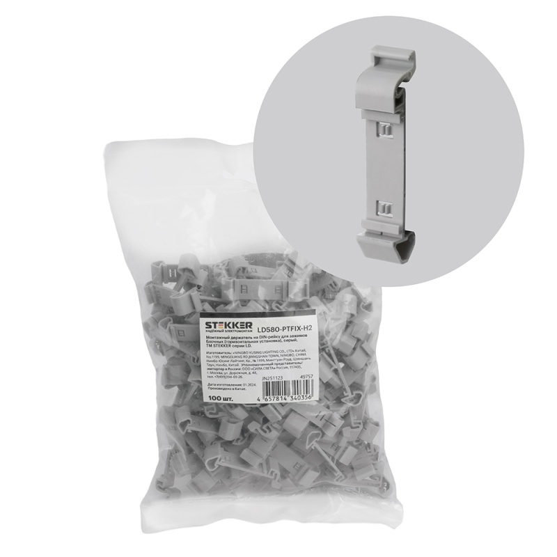 Монтажный держатель на DIN-рейку для зажимов блочных (горизонтальная установка), серый LD580-PTFIX-H2