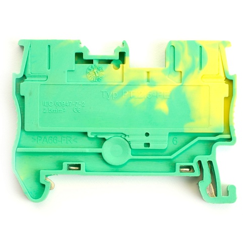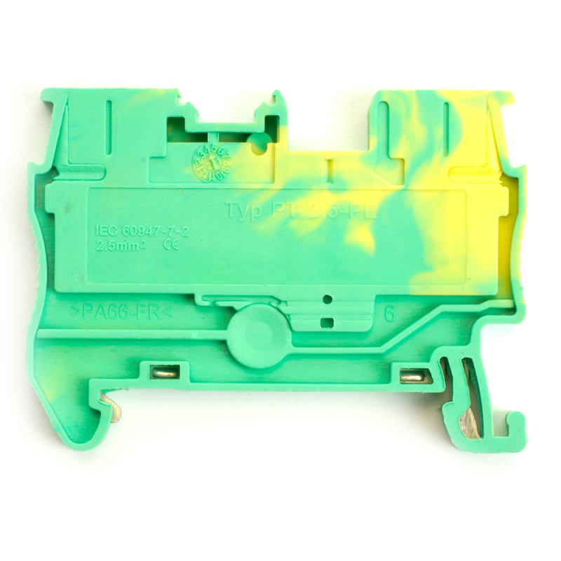 Зажим пружинный, 2-проводной проходной ЗНИ - 2,5 , JXB PT 2,5 , желтый, зеленый LD572-1-25