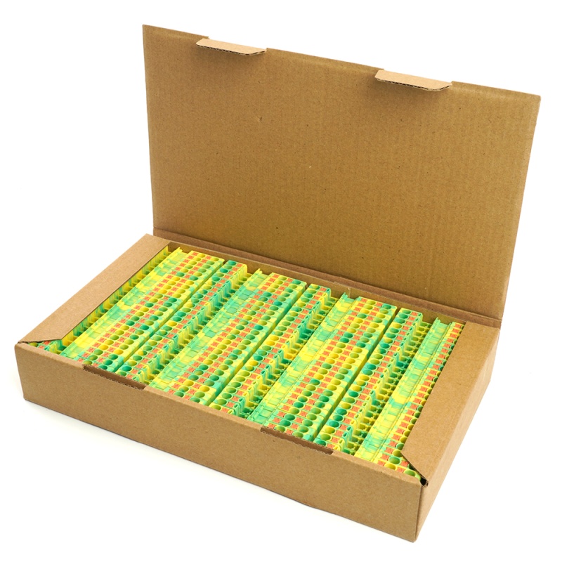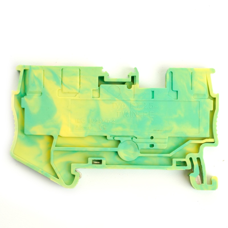 Зажим пружинный, 3-проводной проходной ЗНИ - 2,5 , JXB PT 2.5 TW, желтый, зеленый LD573-1-25