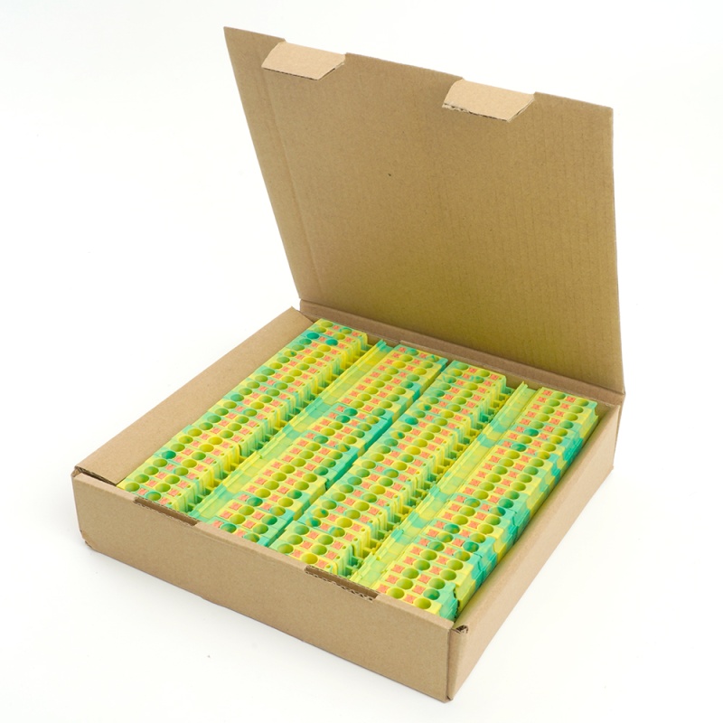 Зажим пружинный, 4-проводной проходной ЗНИ - 4 ,JXB PT 4 , желтый,зеленый LD574-1-40