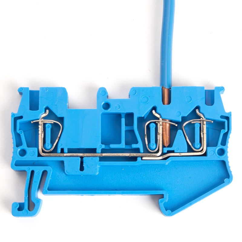 Зажим пружинный, 3-проводной проходной ЗНИ - 2,5 (JXB ST 2,5), синий STEKKER