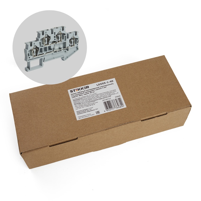 Характеристики Зажим пружинный, 4-проводной проходной 2 уровня ЗНИ - 4.0 (JXB ST 4), серый STEKKER