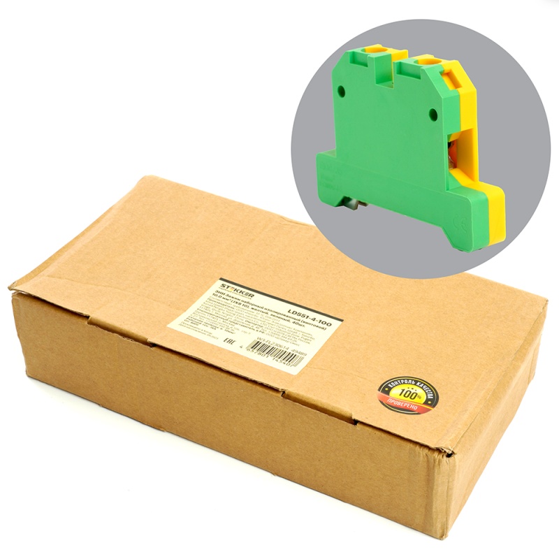 LD551-4-100 ЗНИ Зажим наборный изолированный (винтовой) 10,0 мм2 (JXB 10), желтый,зеленый 49489