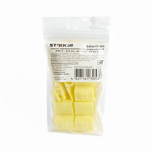 Характеристики Зажим прокалывающий ответвительный ЗПО-3 - 6,0 мм2, желтый, LD502-15 (DIY упаковка 10 шт)