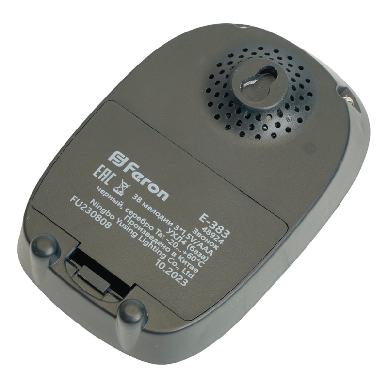 Характеристики Звонок дверной беспроводной Feron E-383 Электрический 38 мелодий черный, серебро с питанием от батареек