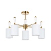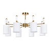 Цвет арматуры: Каркас белого цвета в сочетании с золотым, плафоны из белого акрила, два источника света - встроенная лента LED и лампы внутри плафонов.