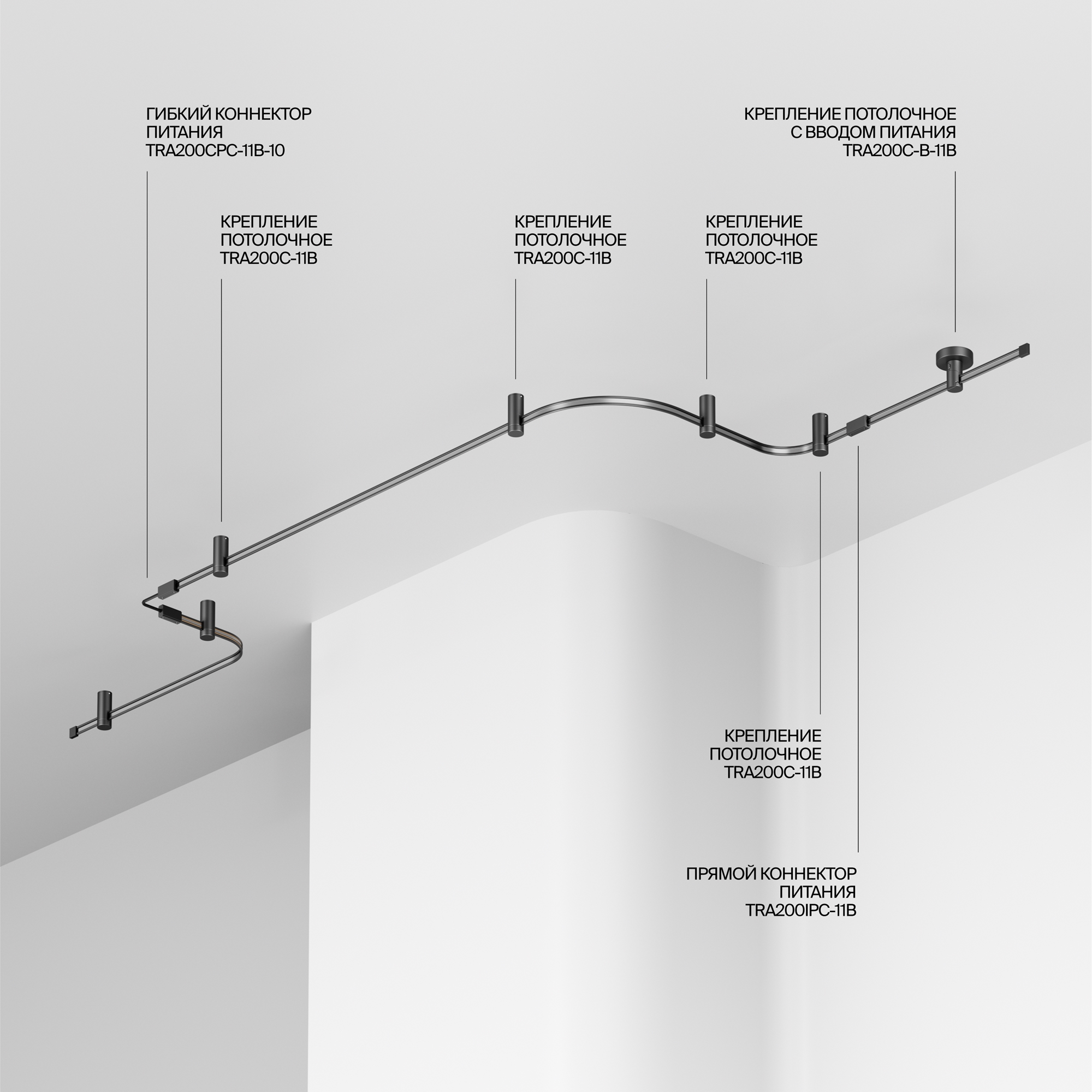 Состав трековой системы Трековая система Technical гибкая на стену чёрная 300x300x300 TS-Z-300-TR210-1-5W3K-M-B